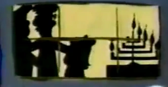 Ruth and her parents, with a menorah on the right.